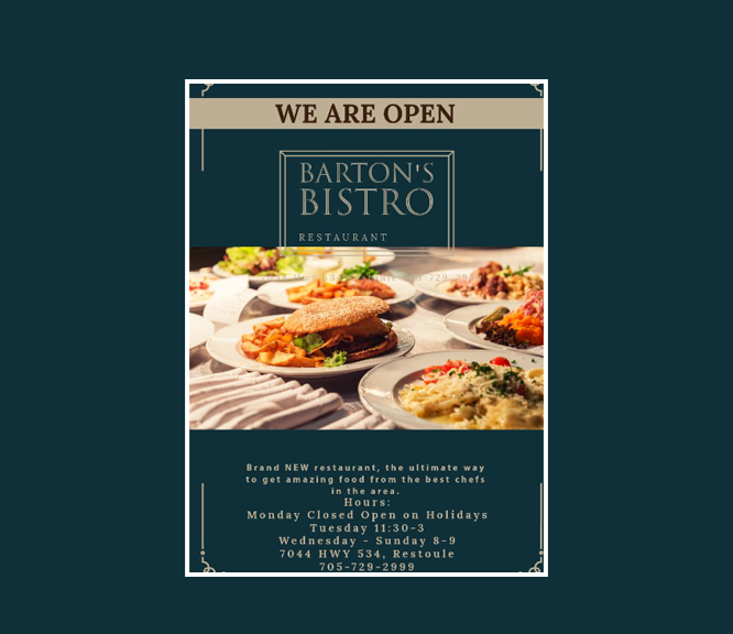 Barton’s Bistro in Ontario, Canada, is a cozy dining spot known for its warm atmosphere and delicious food. The bistro offers a diverse menu featuring fresh, locally sourced ingredients, with dishes ranging from hearty comfort foods to modern Canadian cuisine. Guests often praise its attentive service and welcoming environment, making it a great choice for casual dinners, date nights, or small gatherings. Whether you’re stopping by for brunch, lunch, or dinner, Barton’s Bistro delivers quality meals prepared with care. With its inviting décor and commitment to fresh flavors, it has earned a reputation as a hidden gem in Ontario’s dining scene.